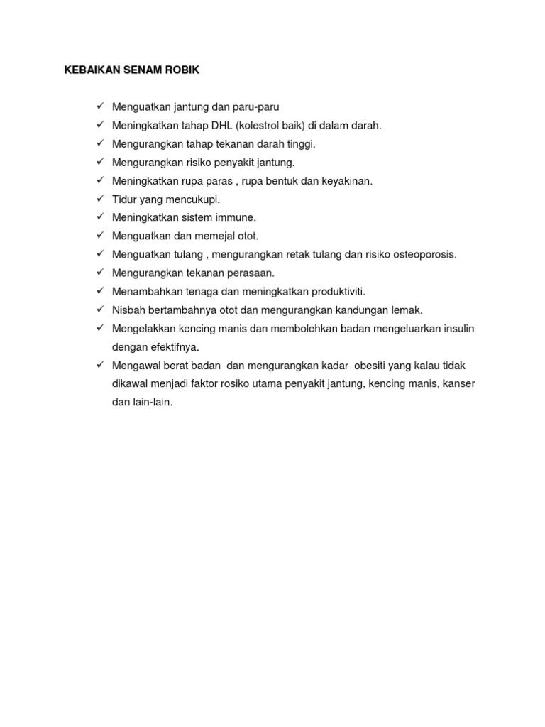 Gerakan-gerakannya harus selalu berguna untuk mencapai tujuan tertentu. Kebaikan SENAM AEROBIK Senaman aerobik. Kebanyakan aktiviti fizikal menawarkan manfaat kesihatan.