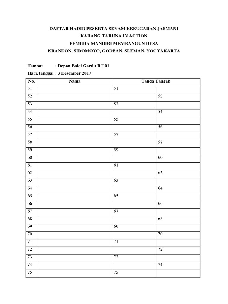 Daftar Hadir Peserta Senam Kebugaran Jasmani Pdf